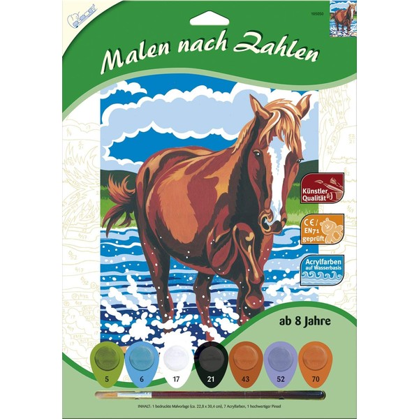Mammut Spiel & Geschenk MAMMUT 105050 - Malen nach Zahlen Tiermotiv, Pferd, Komplettset mit bedruckter Malvorlage im A4 Format, 7 Acrylfarben und Pinsel, Malset für Kinder ab 8 Jahre