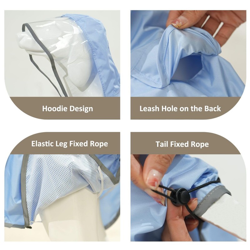 - LEASH HOLE: The raincoat uses the hole design on the back that convenient to attach the leash or harness, providing extra control for your pets.The elastic ropes fix the hem and tail, and will not be lifted in the wind day.