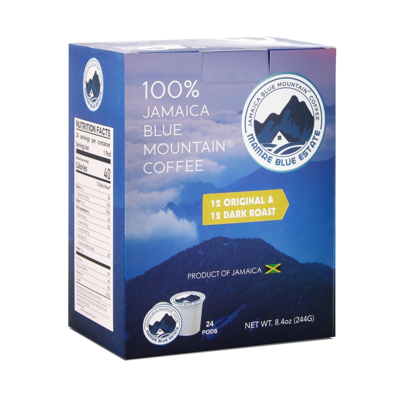 Mamre Blue 100% Jamaica Blue Mountain Coffee (24 Count, Original & Dark Roast)