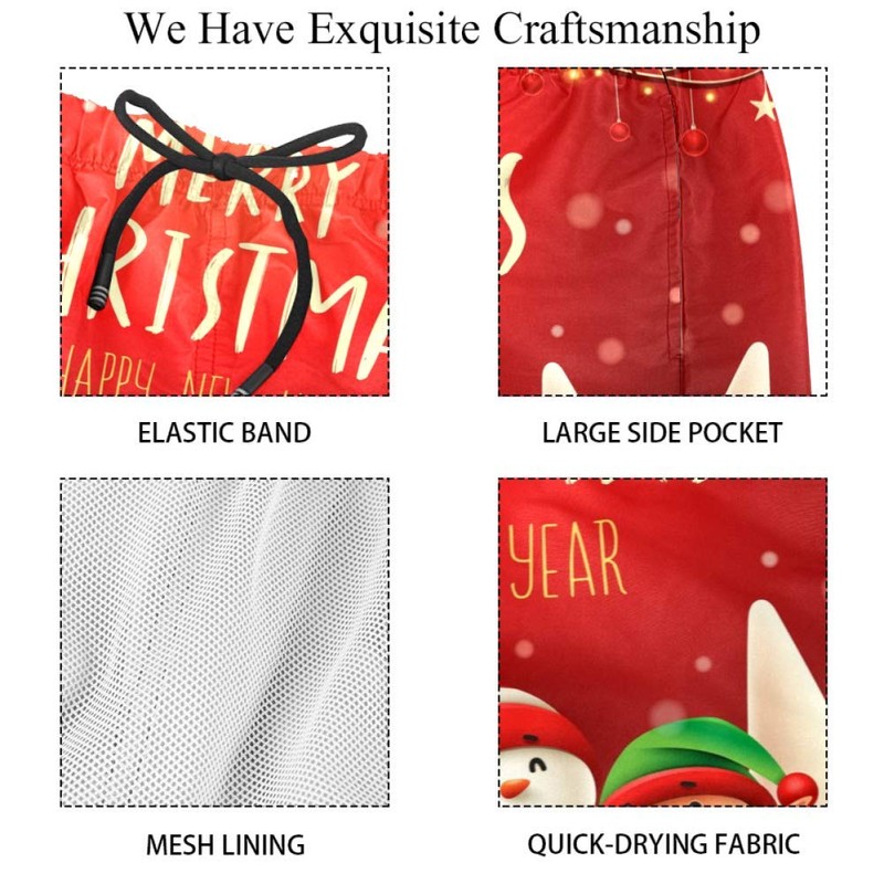Man Beach Shorts Christmas Santa Claus Snowman Reindeer and Elf Happy New Yea...