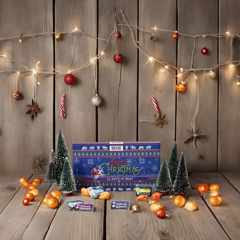 - YULETIDE YUM. Hark! Now there’s a way to enjoy the ugly sweater trend without having to…you know…actually wear one. This year, ditch the scratchy wool, and help him countdown the days to Christmas with a fun advent calendar, containing 12 seasonally scrumptious jerky bites!