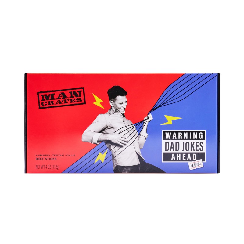 Man Crates, Beef Jerky Gift Box for Men, Includes 3 Flavors of Mini Beef Sticks Individually Wrapped in Dad Jokes, Cool Men Birthday Gifts, Set of 16
