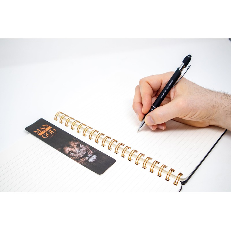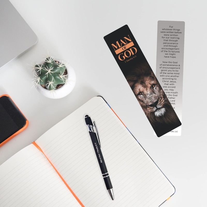 Man of God Gift, Bible Verse Pen with Bookmark - 1 Timothy 6:11 - Inspirational Bible Pens for Devotion - Christian Pens for Men with Stylus - Christian Gifts for Men & Women
