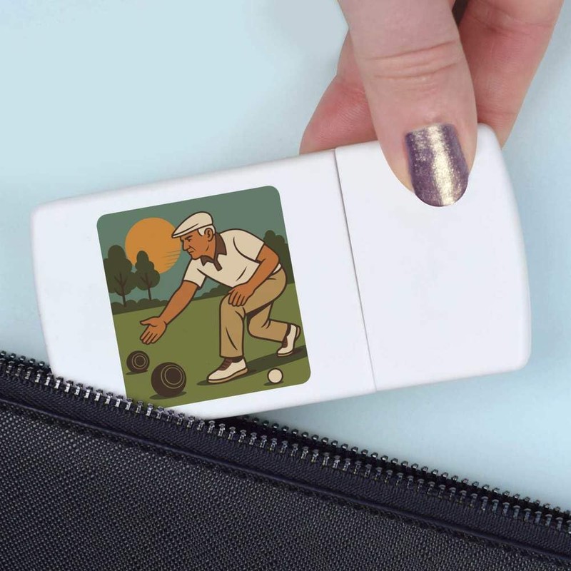 'Capture the focus and skill of a lawn bowls player with this engaging design, perfect for enthusiasts'