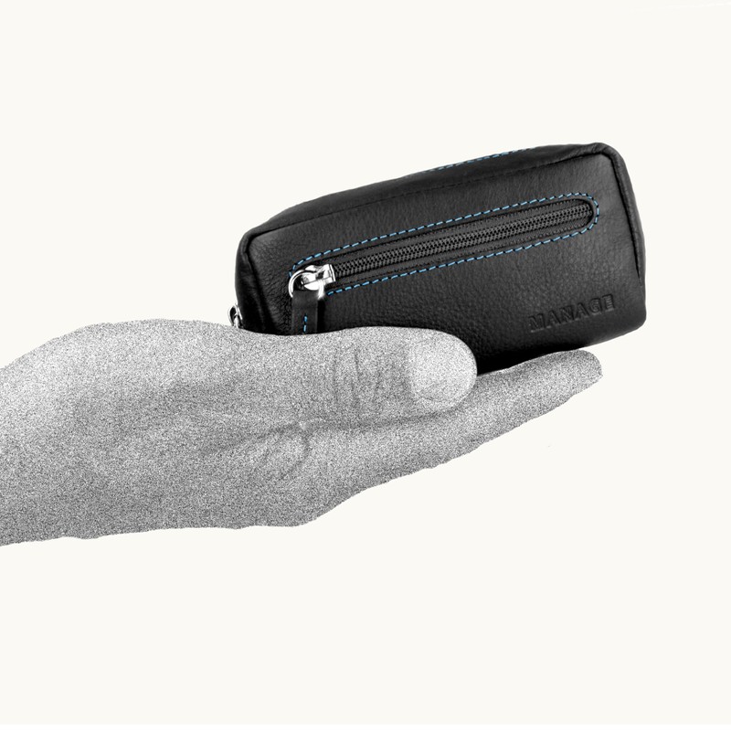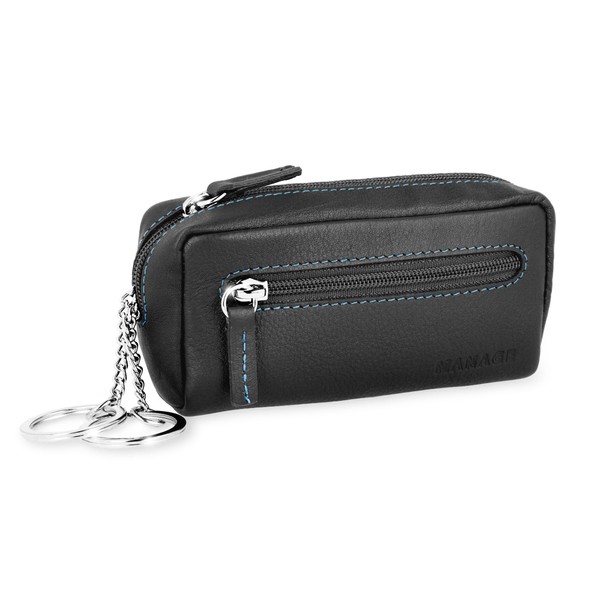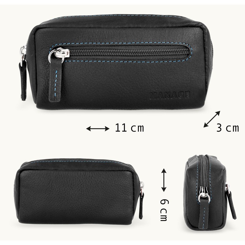 MANAGE XXL Leather Key Bag with Coin Compartment for Men and Women - Genuine Leather Key Case - Large Choice of Colours, blue/black