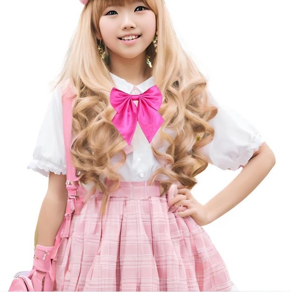 manatom School Ribbon, For Child Gal Uniforms, Adjustable, Plain, One Size, Bowtie, Rose Pink
