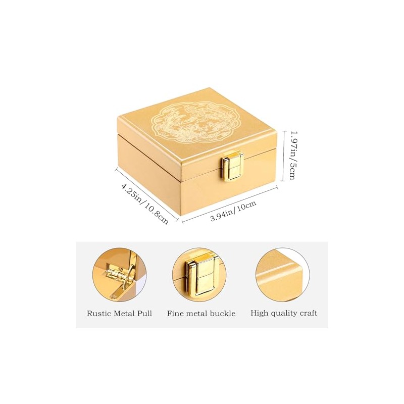 ManChDa Luxury Wooden Pocket Watch Box with Engraved Dragon Phoenix Single Pocket Watch Case Display Organizer Pocket Watch Gift Box the Best Watch Storage Box for Gift Pocket Watch Case Gold