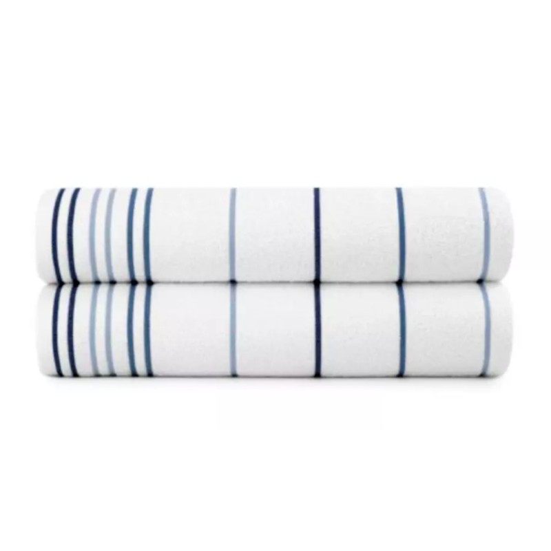 Manchester Mills (2 Pack) Pacific Bay Pool Towel White w/ Multi-Blue Pencil Stripe 34" x 70"