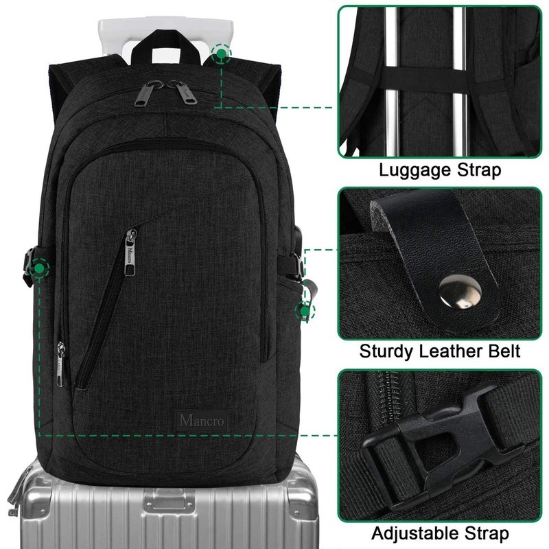 - MATERIAL & CAPACITY: Mancro backpack for men women made of Tear-Resistant Durable Nylon Fabric with Two "S" Curve Padded Shoulder Straps, Specs 20 x 14 x 8 inches and Weighs 1.65 lbs built with laptop compartment fits most portable computers up to 17.3 inches laptops/tablets. Ensure a long-lasting usage everyday