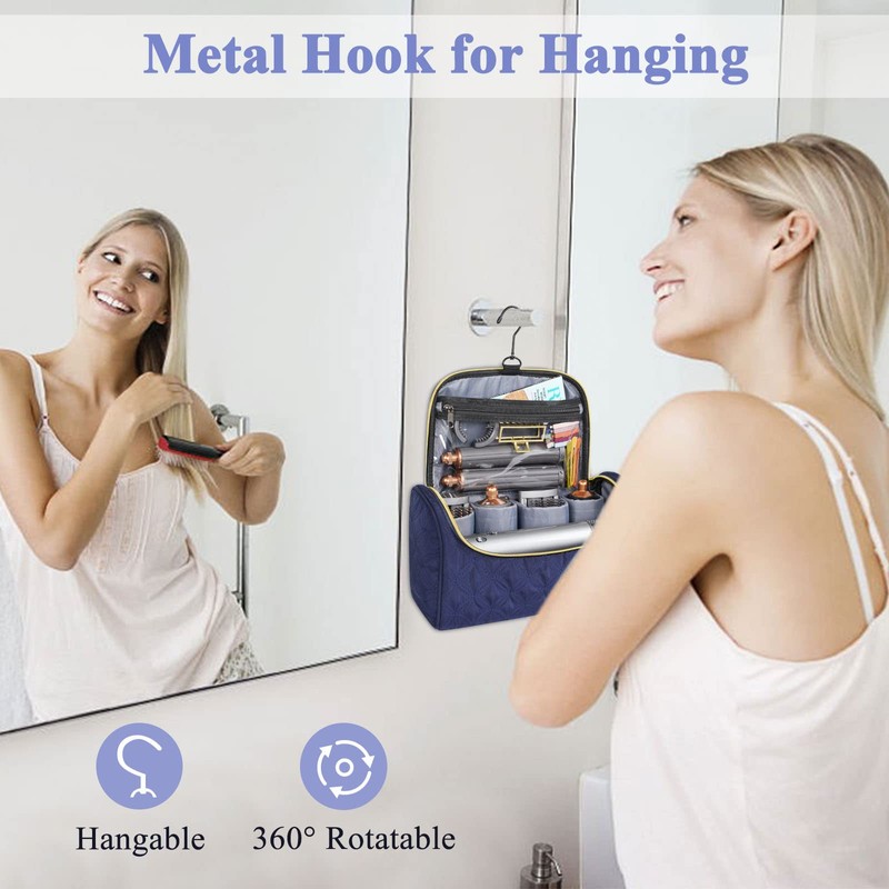 - Space Saving and Travel Friendly: The portable Mancro travel case fit for Dyson comes with rotatable and no-slip metal hook that can be hung on walls or doorknobs compatible with dyson airwrap holder. The carrying case for Airwrap attachments is easy to fit in suitcase and saves space