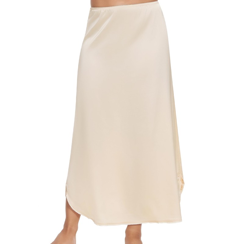 MANCYFIT Long Half Slip for Women Under Dress Satin Slip Skirt Extenders 36" Maxi Underskirt Nude Medium