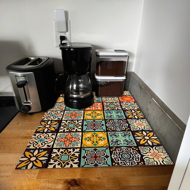 - Size : 23.6×15.7 inches .CAPASIN Mandala Boho coffee drying mat is a must-have accessory for all coffee enthusiasts. enjoy your favorite coffee or tea without worrying about spills, as this coffee mat is designed to keep your tabletops clean and dry.