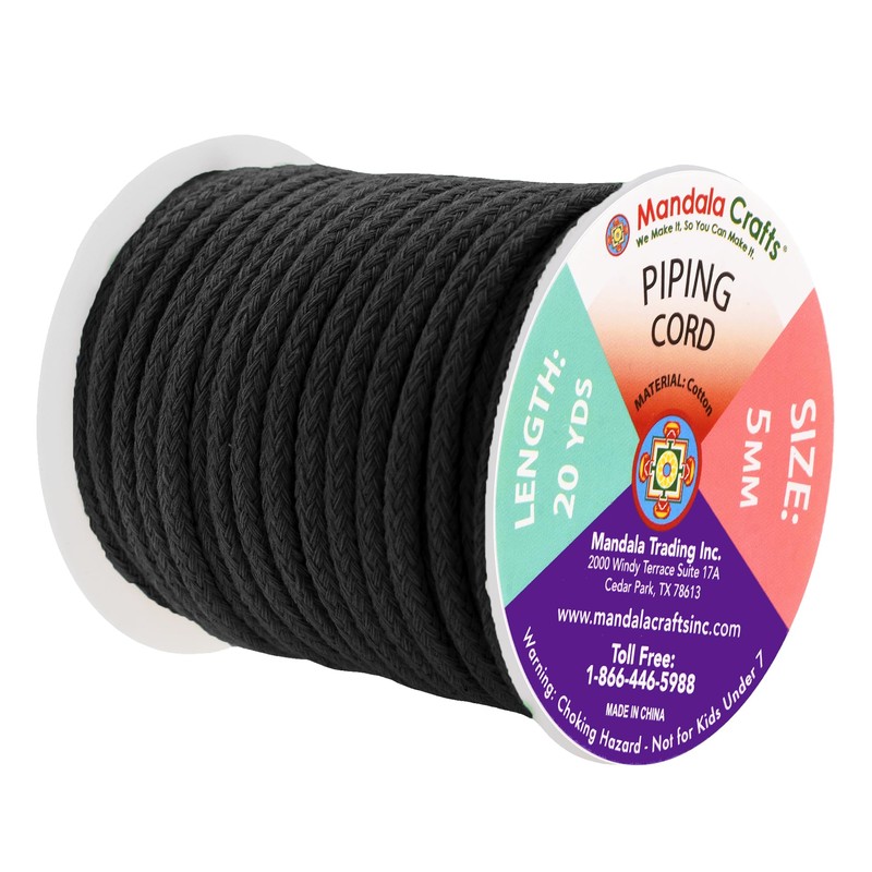 Mandala Crafts Black Soft Replacement Drawstring Cords for Sweatpants Bags - Piping Cord for Sewing Upholstery - 20 Yds 5mm Cotton Cording Macrame Rope Corset Strings