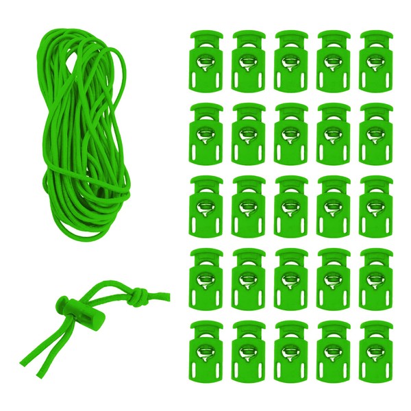 Mandala Crafts Green Shock Cord & Plastic Cord Locks for Elastic Drawstring Clips - Bungee String & Spring Toggle Cord Ends Stopper Clamps for Shoelace Paracord