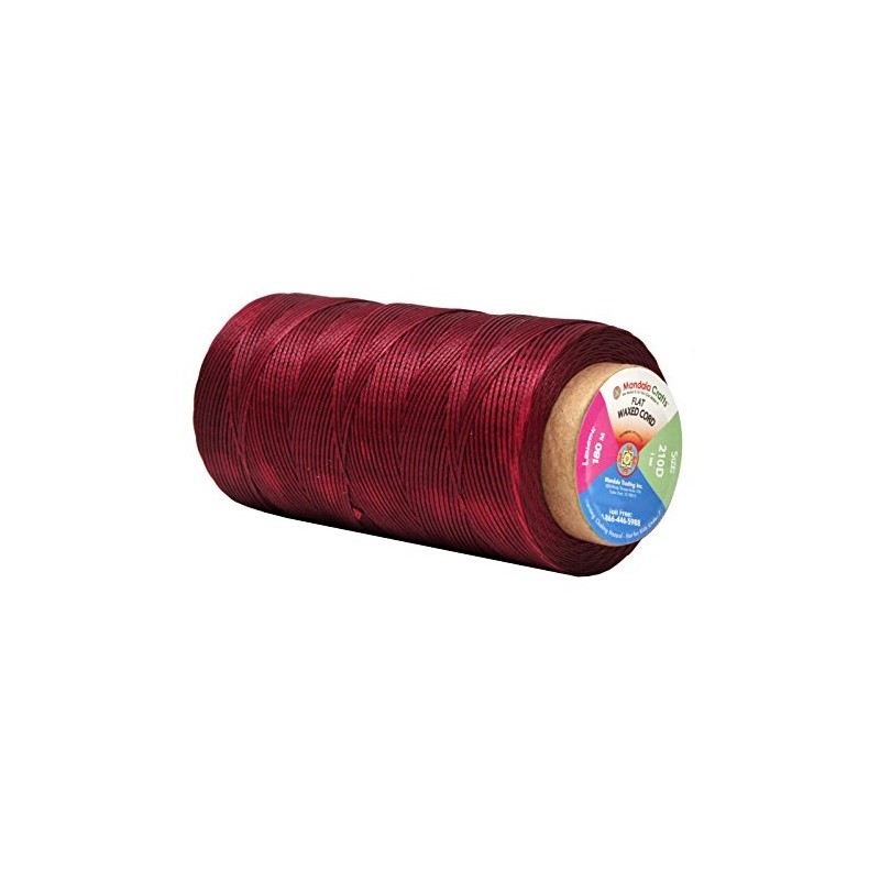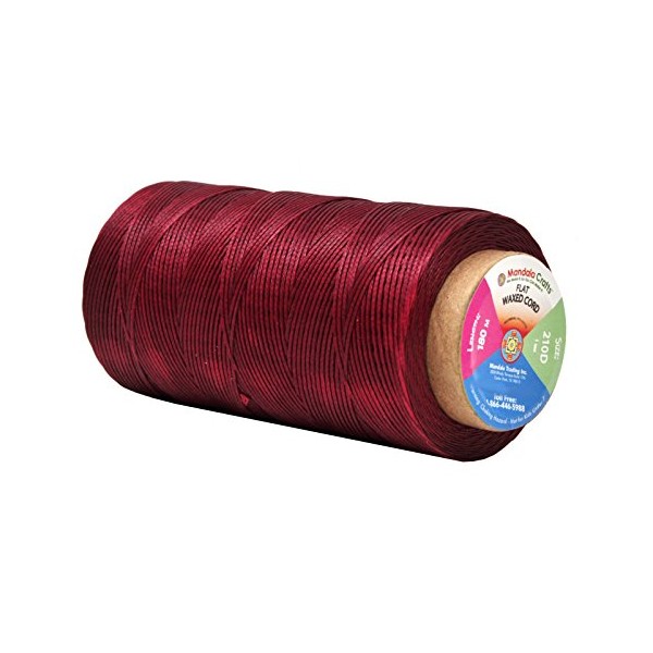 Mandala Crafts Maroon Flat Waxed Thread for Leather Sewing - 197 Yds 210D 1mm Polyester Leather Thread String Waxed Cord for Leatherwork, Beading, Bookbinding, Hand Stitching