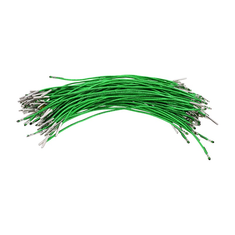 - Bulk Round 2mm Elastic Barbed Cord Loops: The elastic loop kit includes 100 pcs of 13 inches long metallic green elastic cords with barbs (0.5” wide). The installation of the elastic barbs is as simple as feeding the silver metal elastic ends through holes to bind or fasten.