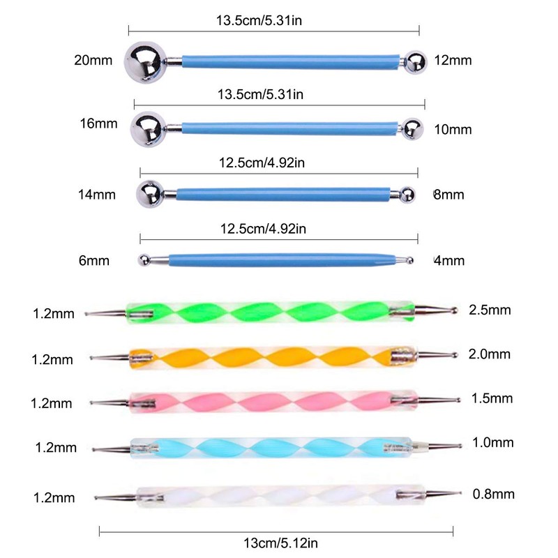 - Dotting Tools Application Ideal for painting dots on rocks, canvas, shells or pumpkins, making dots or mixing seams in clay, embossing patterns and more.