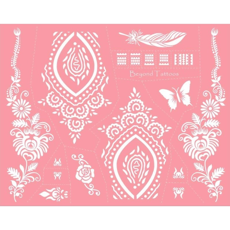 - You will receive 1 sheet of micro mesh stencils size 24 x 19 cm with motifs such as butterfly, feather, flowers and mandala. The scarves have EU and USA quality standards. This product is a stencil. The durability of the tattoo depends on the quality of the henna.