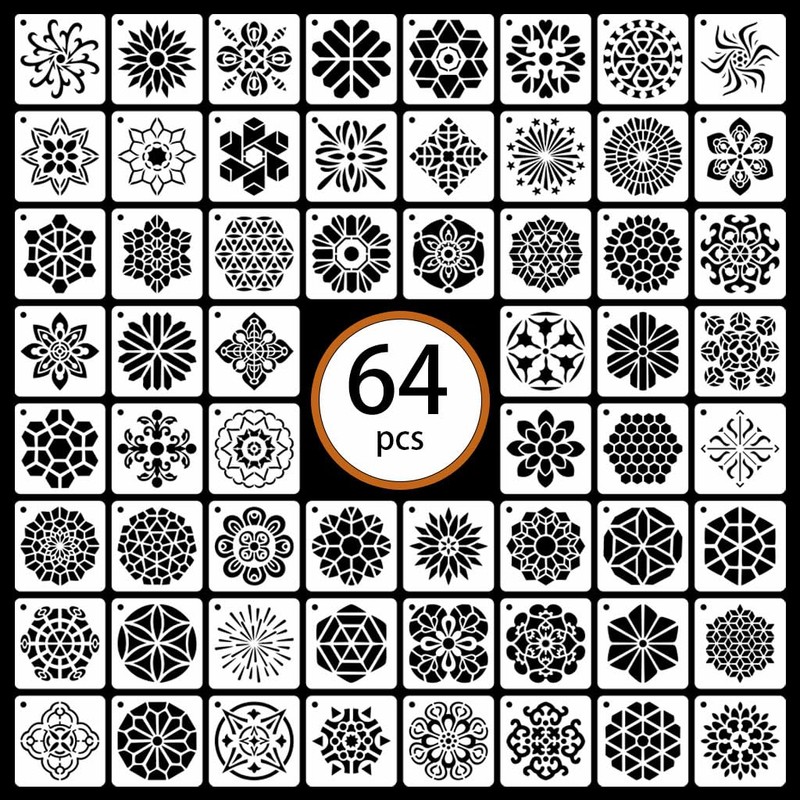 - 64 Patterns: These mandala stencils for painting include 64 different mandala patterns. Easy to create a stunning artwork with them, no prior experience necessary
