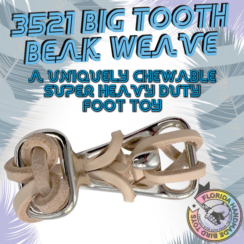 The 3521 Big Tooth Beak Weave from M&M Bird Toys is a uniquely fun to play with heavy duty foot toy. This toy is made for biting beaks.
