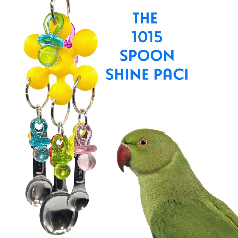 - The 1015 Spoon Shine Paci from M&M Bird Toys is a deluxe hanging bird cage toy. This interactive toy features enticing parts, durable rings, jingling sounds and reflective parts.