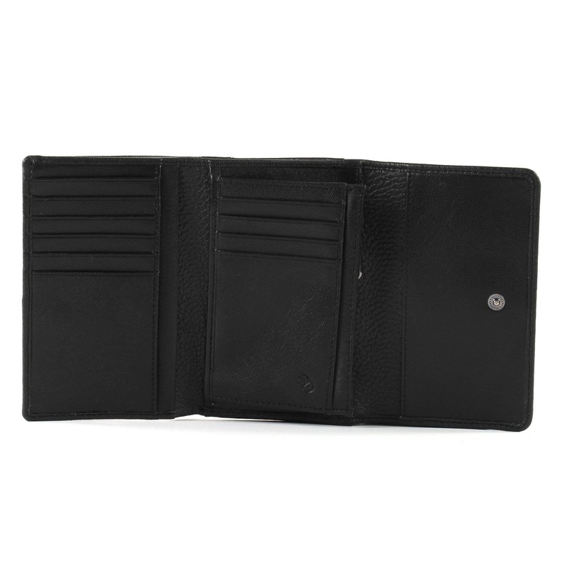 - Medium textured leather wallet. Very good interior organization with lots of credit card slots and zipper coin pocket. Enriched with metallic logo on the front.