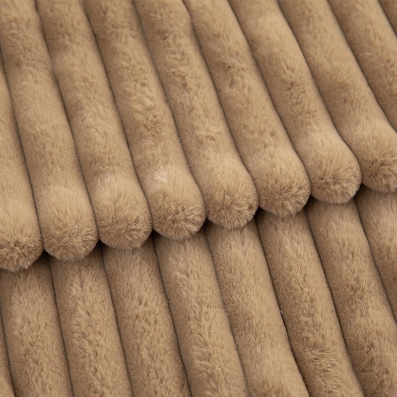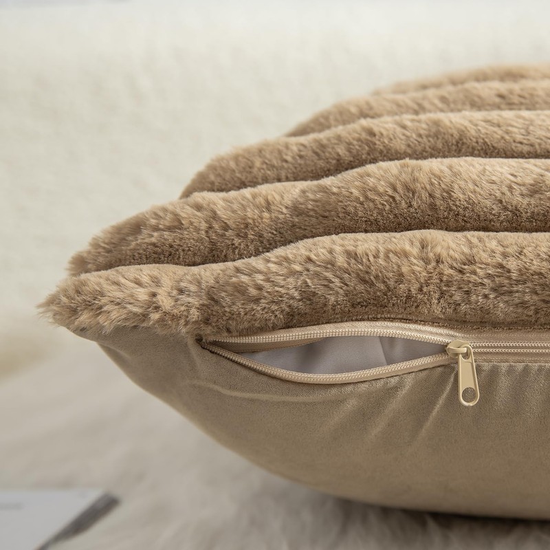 Mandioo Pack of 2 Decorative Throw Pillow Covers Faux Fur Striped Plush Soft Cushion Covers Pillow Cases Bedroom Living Room Sofa Home 24x24 Inch 60 x 60 cm Camel