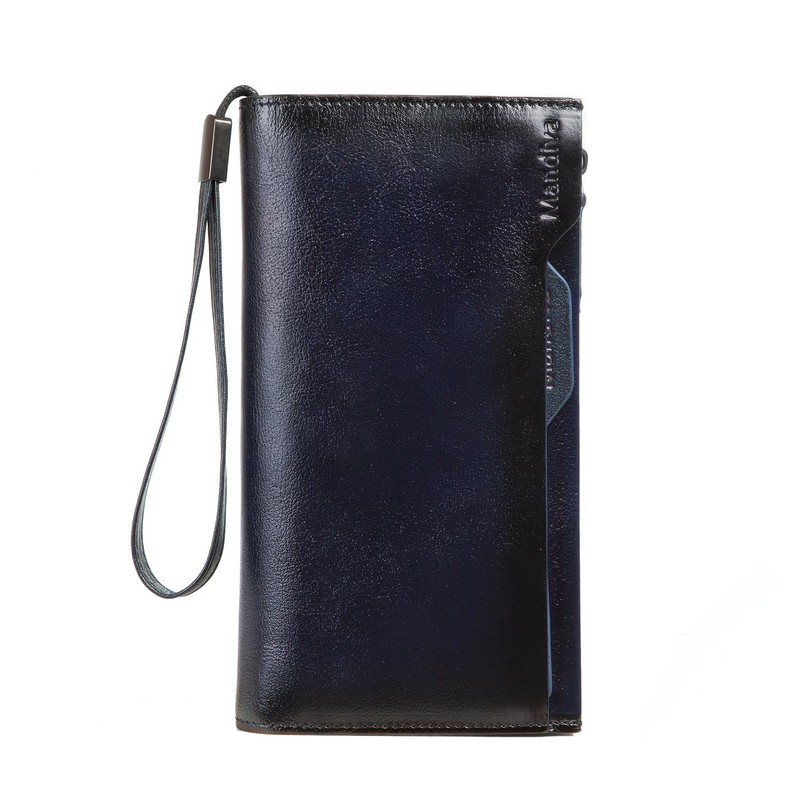 Mandiva Men's Long Wallet, Genuine Leather, Handbag, Separate Type, Coin Purse, Large Capacity, Top Leather, Navy Type 02