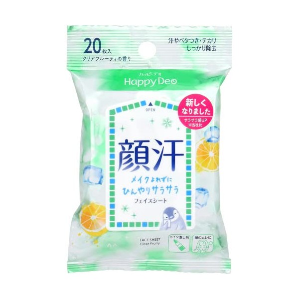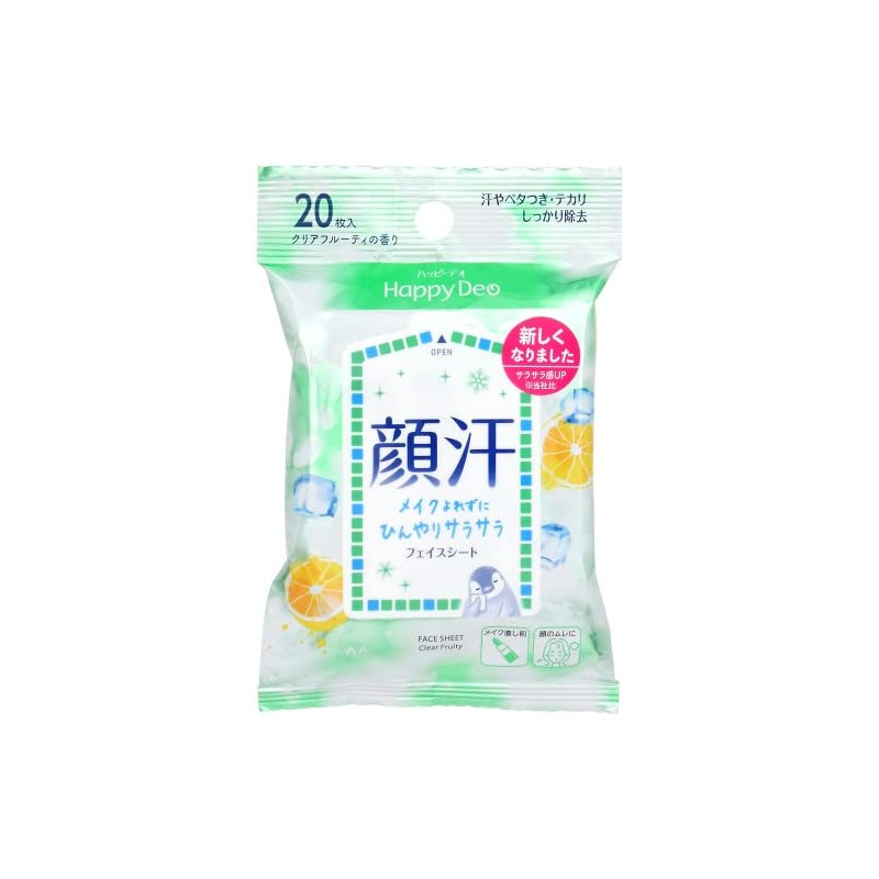 Mandom MD Happy Deo Face Sheets, Clear Fruity, 20 Count