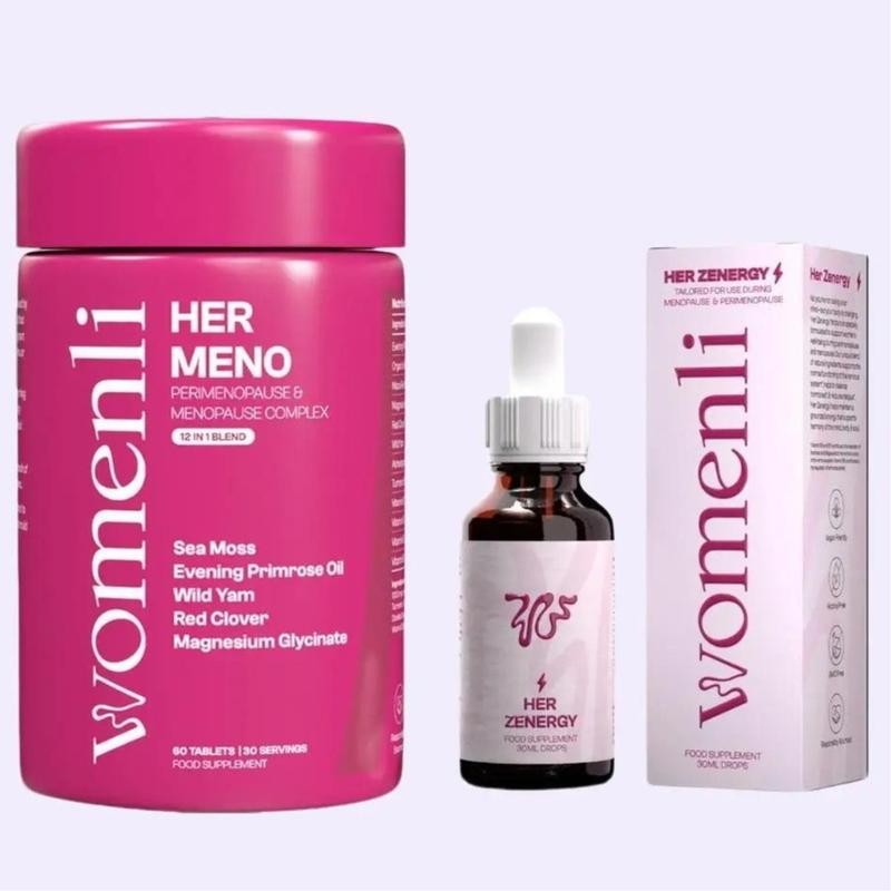 Mandy Meno Support Bundle | Her Zenergy drops + Her Meno capsules | 30 day supply | Herbal Food Supplement with Lions Mane, Maca Root, Ashwagandha, Wild Yam, Sem Moss & More
