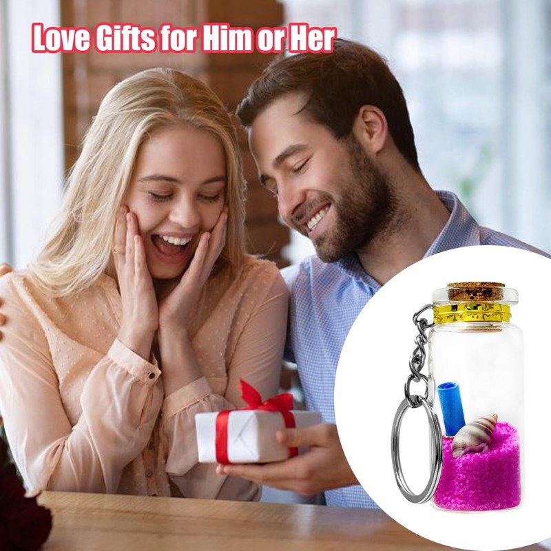 MaNeaz Pink Gift Love Gift for Partner Love Gifts for Women Anniversary and Adults as Wedding Anniversary Romantic for Women and Men Floating Wish Bottle with Keyring