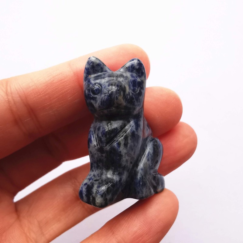 Manekieko 2 x Natural Sodalite Happy Cat Crystals and Healing Stones Figures Collectibles, 1.5 Inch Office Decor