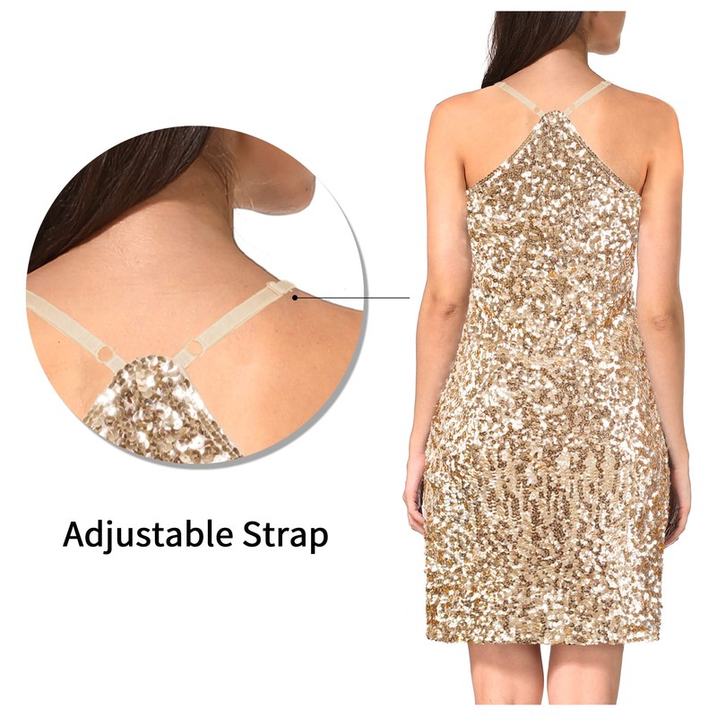 - Adjustable Strap Mini Party Bodycon Stretchy Sequin Cami Dress The length of the sling can be adjusted freely to meet different needs.