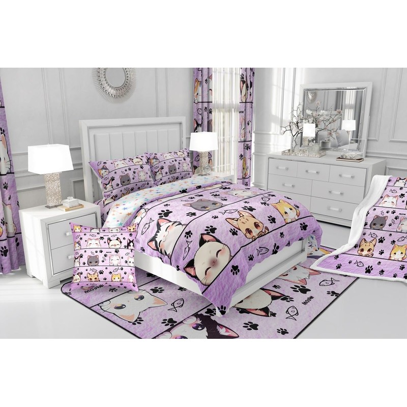 Manfei Cartoon Cat Duvet Cover Set Toddler Size,Kitten Kitty Pet Purple Bedding Set,Cute Animals Quilt Cover for Kids,Comforter Cover(No Filler),2 Pcs