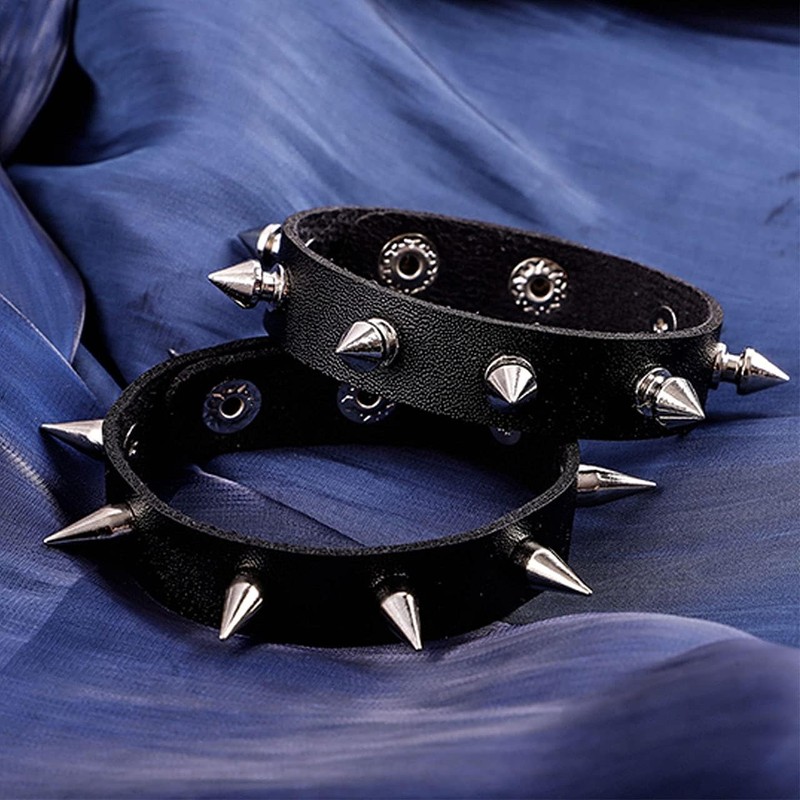Manfnee 2Pack Punk Goth Bracelet for Man Women Leather Spike Rivet Metal Studded Wristbang Black