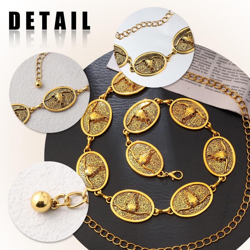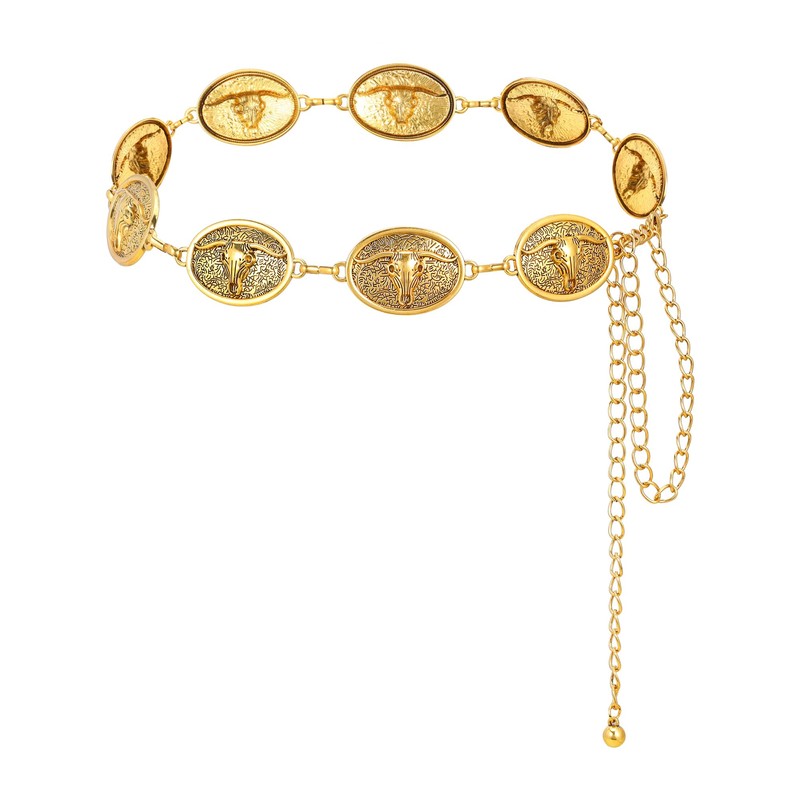 Manfnee Western Metal Concho Belt for Women Cowgirl Chain Belt for Dresses Jeans Country Concert Outfit, Alloy, No Gemstone