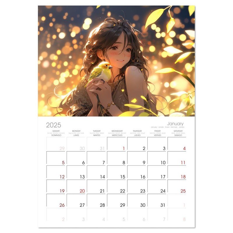 - DESIGN - 12 unique pictures, large monthly grid for planning with dates in 5 languages, including Spanish and French. 14 Month Calendar (Jan 2025 - Feb 2026).
