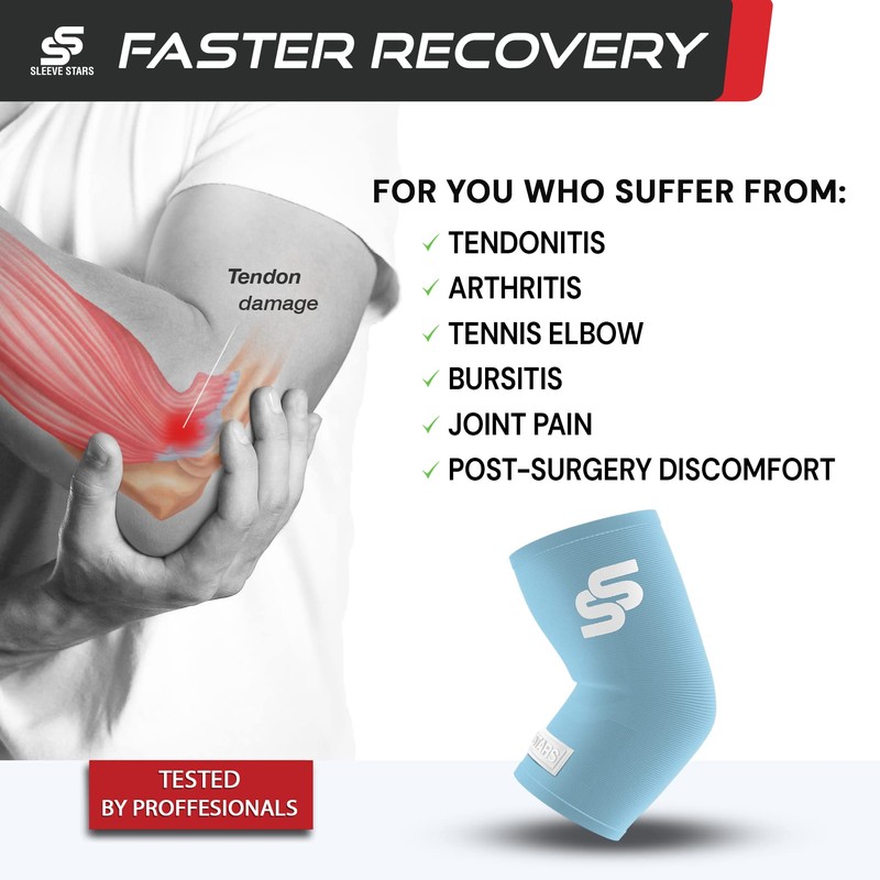 - ✅ Proporciona protección y alivio: la manga de compresión de codo de tenis Sleeve Stars proporciona una gran compresión que te ayudará a recuperarte más rápido y te permite volver a hacer lo que te gusta