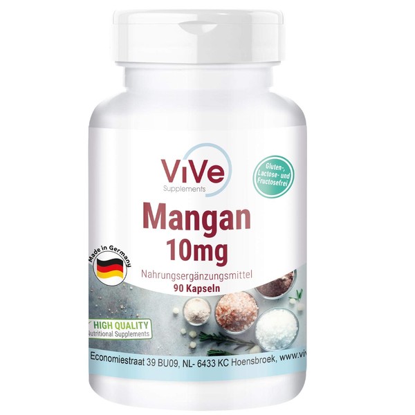 Manganese 10 mg - 90 Capsules - High Dose - Essential Trace Element - Vegan | Quality from Germany by ViVe Supplements