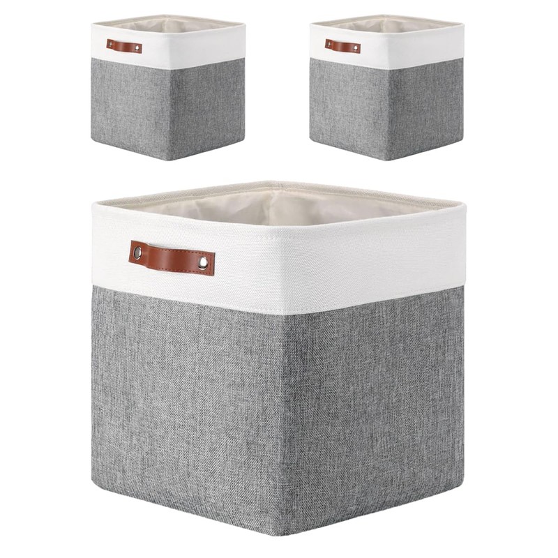 Mangata 25|28|30|33cm Fabric Storage Boxes, Set of 3 Storage Cubes(25x25x25cm, Grey White)