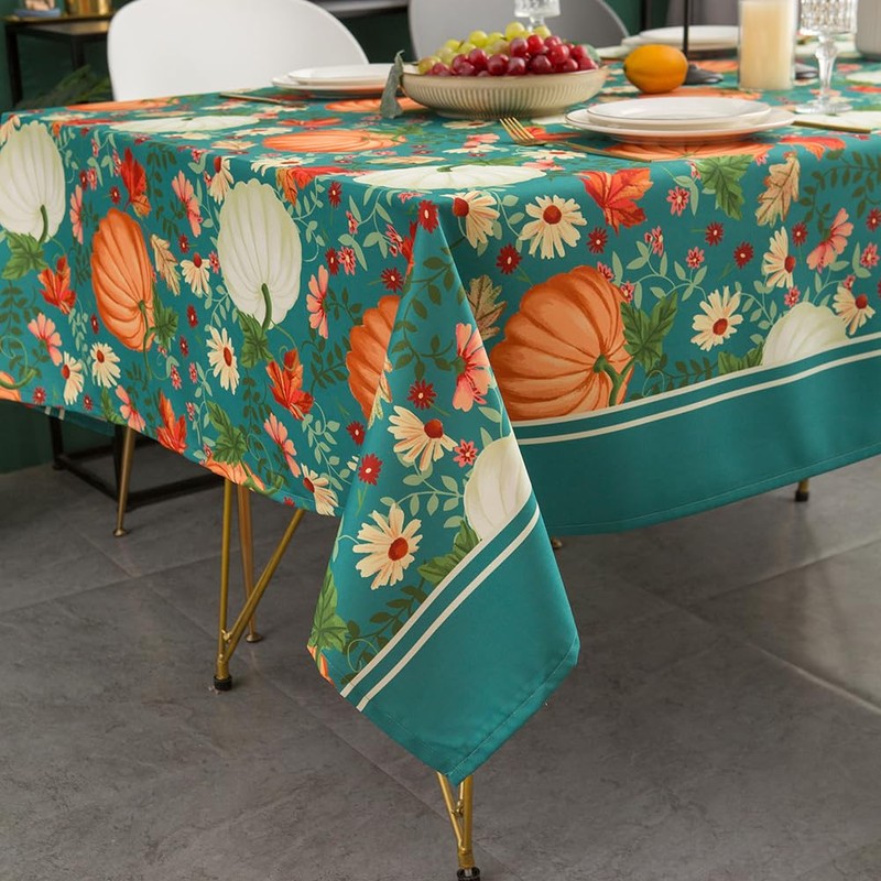 MANGATA CASA Pumpkin Table Cloth Rectangle Table-Fall Tablecloth Rectangular for Thanksgiving-Poly Fabric Waterproof Harvest Table Clothes (Turquoise-60X120in)