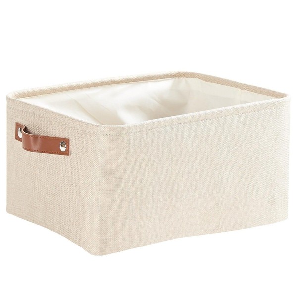 Mangata Fabric Storage Boxes,Collapsible Storage Basket for Books, Baby Toys, Clothes (Medium, Light Khaki)