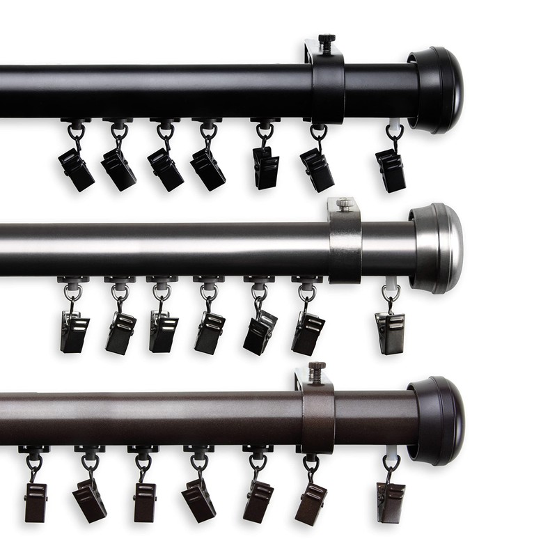 - Includes one 1" diameter adjustable traverse rod w/ sliders, one pair of decorative finials, brackets, and mounting hardware