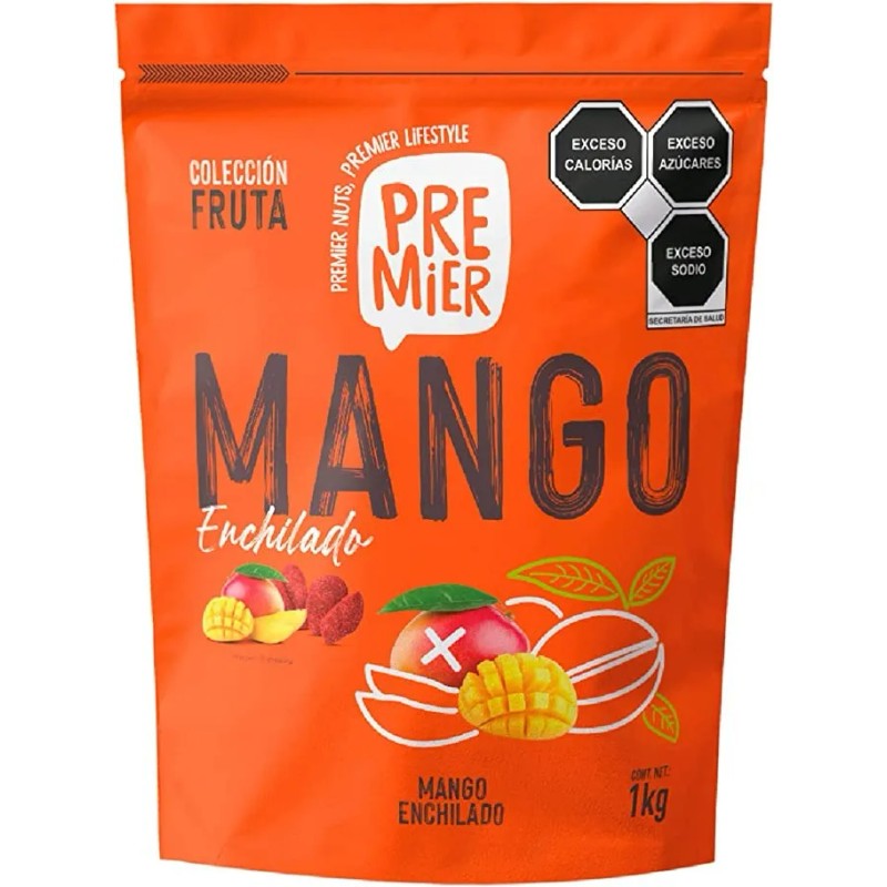 Mango Enchilado Deshidratado Premier, distribuido por DISFRUTO NUTS. Contenido Neto 1000gr.