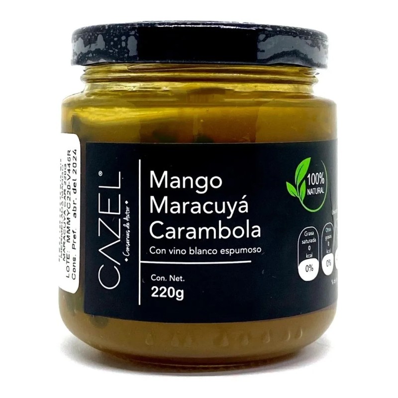 Disfruta de la deliciosa mermelada de Mango, Maracuyá (Passion Fruit) y Carambola (Estrella) en su presentación de 220g. Esta mezcla exótica de frutas tropicales ha sido elaborada con ingredientes 100% naturales, perfecta para los amantes de los sabores frescos y dulces de la naturaleza. 🌿🍊