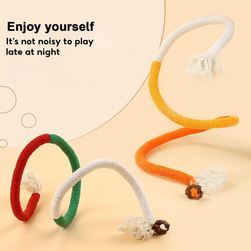 And when you're busy or not around, don't worry! These are self play cat toys for indoor cats. Your furry friend can enjoy hours of solo entertainment, batting at the ribbon cat toy elements, chasing the dangling parts, and getting lost in their own little world of fun. They're also kitty cat toys that can be used as a cat scratcher rope, satisfying your cat's urge to scratch and claw in a healthy way.