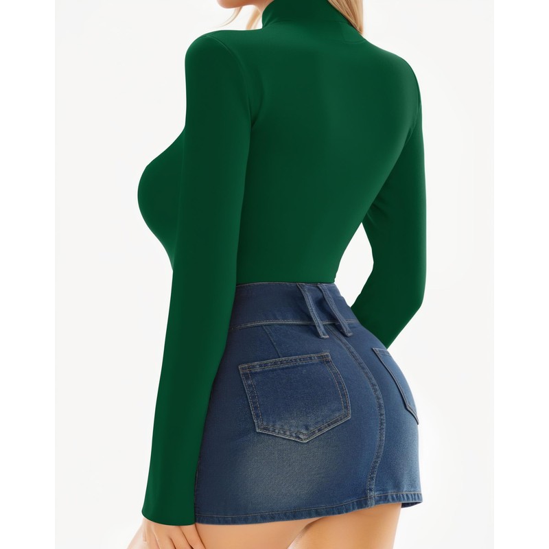 Long sleeve mock turtleneck bodysuits for women with classic fashion style fits various type and occasions, never goes out of style. The form-fitting bodysuit design hugs your curves in all the right places.