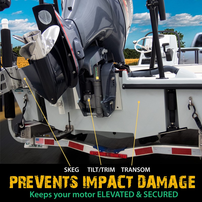 - ✅UNIVERSAL FITMENT: Supports outboard motor brands such as Yamaha, Mercury, Suzuki, Evinrude, Honda, and Tohatsu. Specific Fitment range for outboards with single ram hydraulic tilt systems (See Fitment Guide). The intended use is to support and brace the outboard motor when trailering to prevent any unwanted motor travel up and down when trailering, This unwanted movement can put damaging pressure to the tilt and trim unit's hydraulic system and boat transom without using wedge/block support.