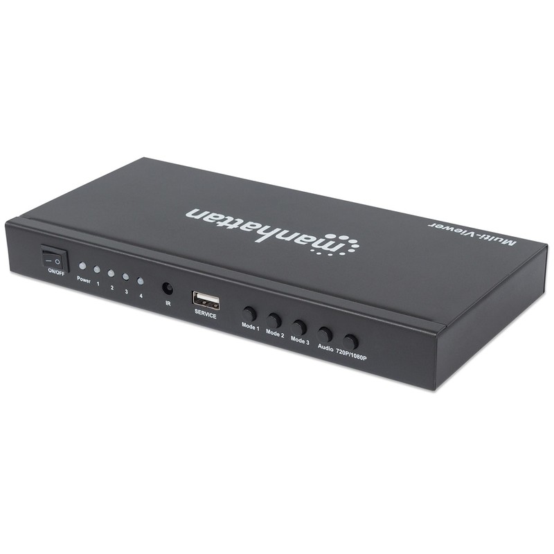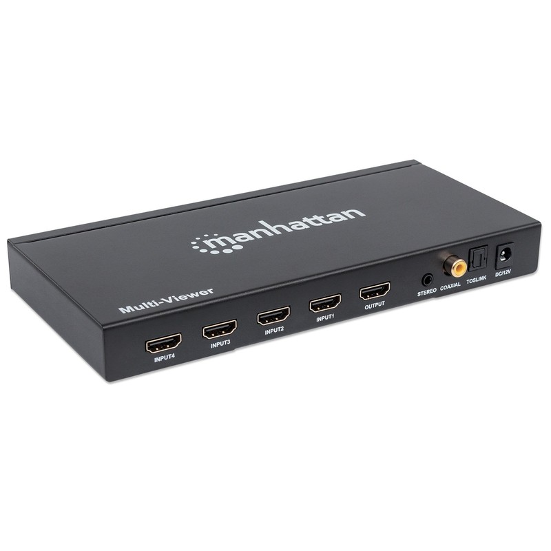 Manhattan 207881 1080p 4-Port HDMI Multiviewer Switch, Switch with Four Inputs on One Display, Video Bandwidth Amplifier, IR Remote Control, Black
