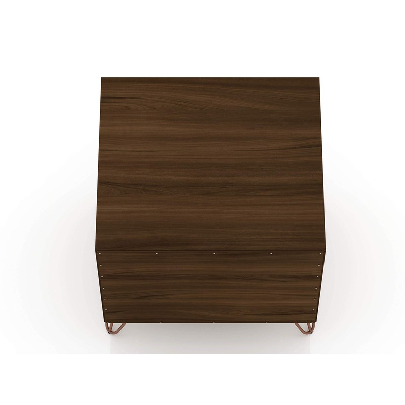 - Have a Gorgeously Stylish Storage Unit in Your Bedroom with the Rockefeller 2. 0 Nightstand by Manhattan Comfort, Featuring a Sleek Midcentury Design in a Luxurious Natural Brown Finish.